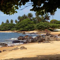 Cameroon is a country of wonderfully varied landscapes, where over 200 languages are spoken. There are the rugged, volcanic plateaus that stretch from east to west, wildlife-rich rainforests in the south, and miles of arid plains in between. The capital city, Yaoundé, is spread over seven hills, boasting a collection of Art Deco and modern government buildings. Towering on the hillside is the Unity Palace, a striking piece of architecture home to the President of Cameroon. From here, as well as the seaport city of Douala, you can head out to areas of great natural beauty. In the south, Limbe sits between the green foothills of Mount Cameroon, which can be climbed in two days, and several palm-fringed beaches. You may also want to venture north to navigate a rugged ring road that surrounds an area of vibrant valleys and dramatic mountains called Grassfields. There’s a good range of accommodation options spread through Cameroon. Hotels, villas, guest houses and self-catering apartments can be found in all the major cities and towns, and a few others in the more remote areas.